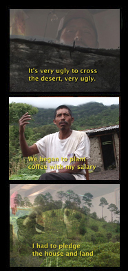 Juan Lopez, a Tzotzil Mayan man with ejidal land in Chenalhó, tells of his going to the U.S. in order to survive, the struggle to stay alive crossing the desert in August, the difficulty of finding work, the heavy debts to coyotes, and his return with just enough saved to plant coffee and seed his land and start a new life on his land. His wife and children speak of their desperation while he was gone.